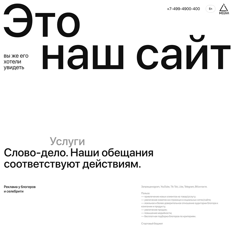 Сайт, на котором ничего нет, кроме текста. Источник: PR-агентство VI-media